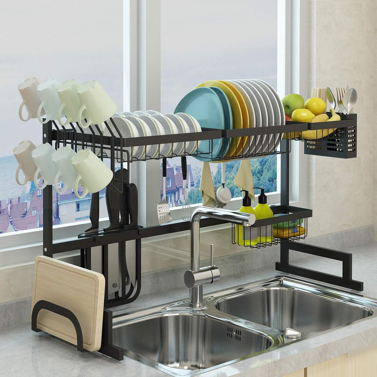 2 Layers Multi-use Stainless Steel Dishes Rack Stready Sink Drain Plate Rack Kitchen Oragnizer Rack Dish Shelf Sink Drying Rack